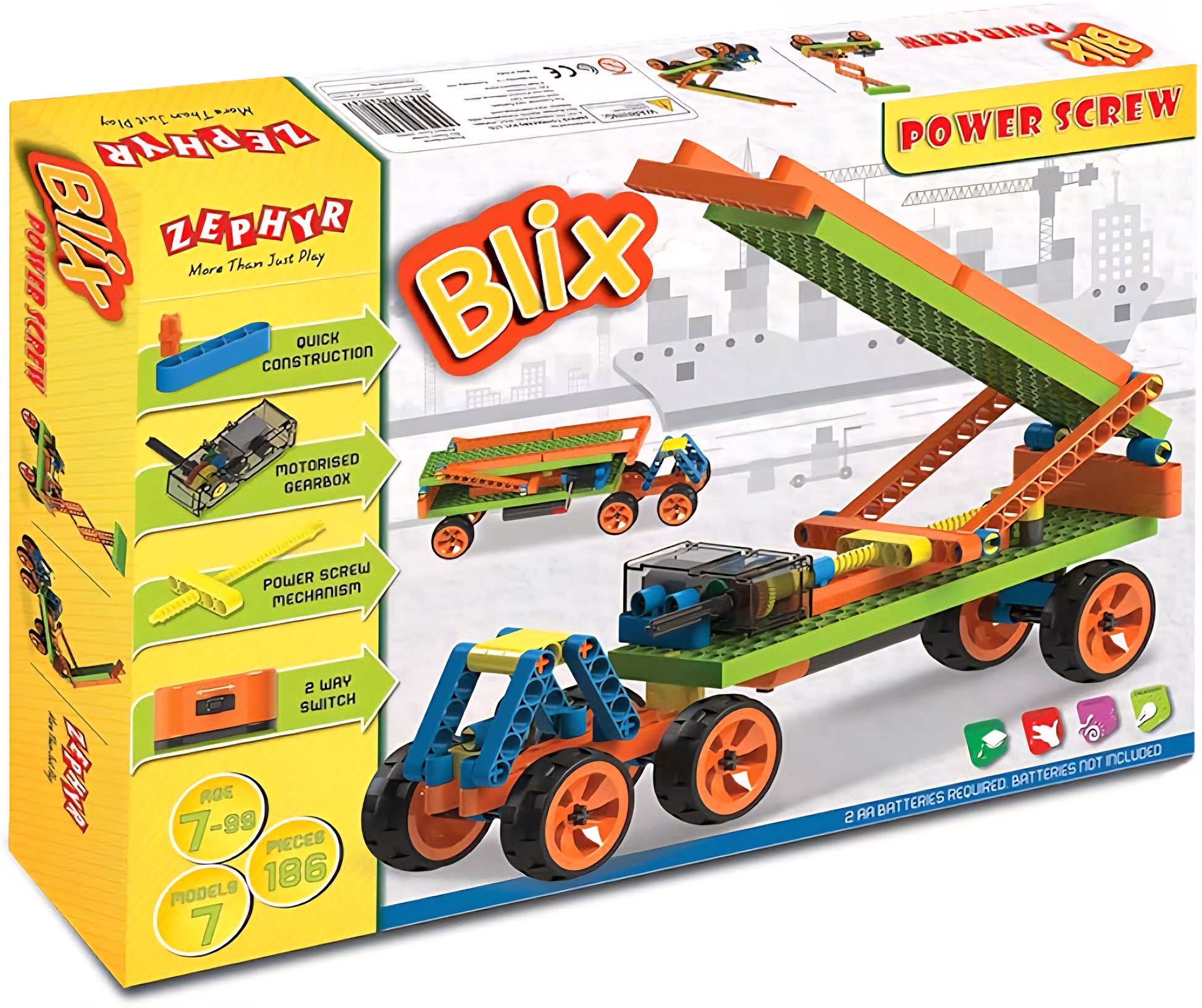Turn playtime into a STEM adventure with the BLIX Power Screw Kit — a dynamic building set that empowers kids to create 7 motorized machines, including a Dumper Truck, Scissor Lift, and Pressing Machine.